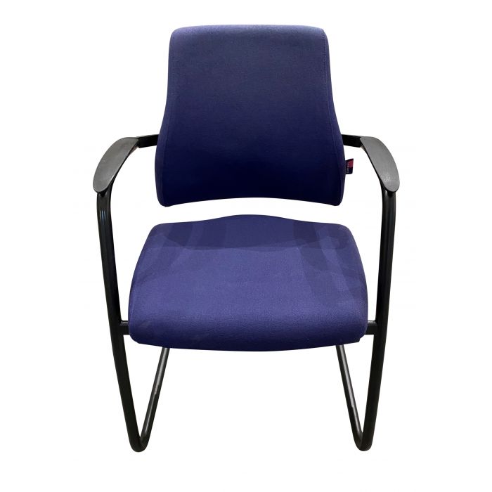 Vergaderstoel van BMA Axia. Dit sledemodel is voorzien van een zwart onderstel en een gestoffeerde zitting en rugleuning. De stoel heeft zwarte armleggers, welke extra comfort garanderen.