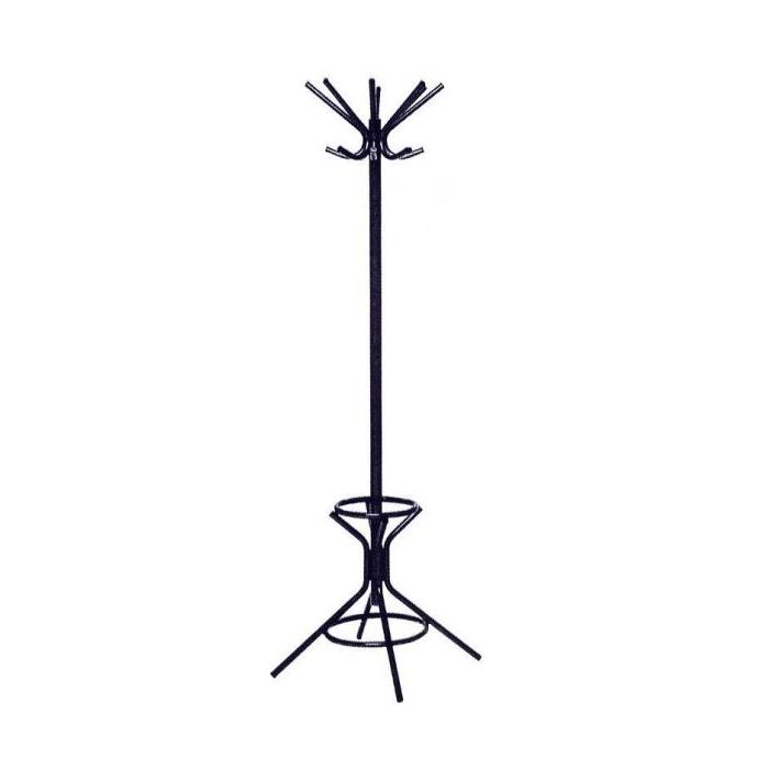 De kapstok heeft een ronde vierpoot voor stabiliteit. Daarnaast is hij voorzien van 5 grote jashakken.