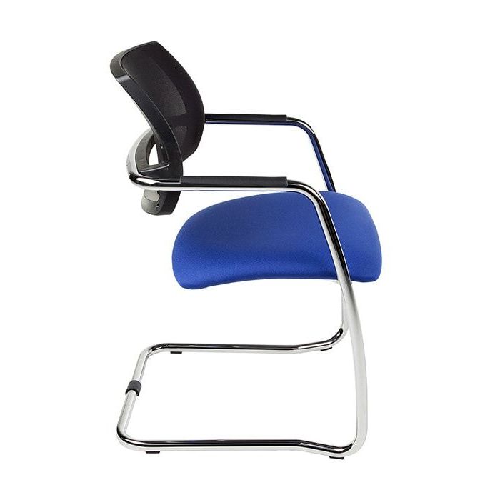 Deze professionele vergaderstoel is voorzien van een gestoffeerde zitting in combinatie met een chroom slede frame en een netwave bespanning. Daarnaast beschikt hij over armleggers met opdek en vloerbescherming. Ook is het mogelijk om de stoel te stappelen voor het makkelijk opbergen.